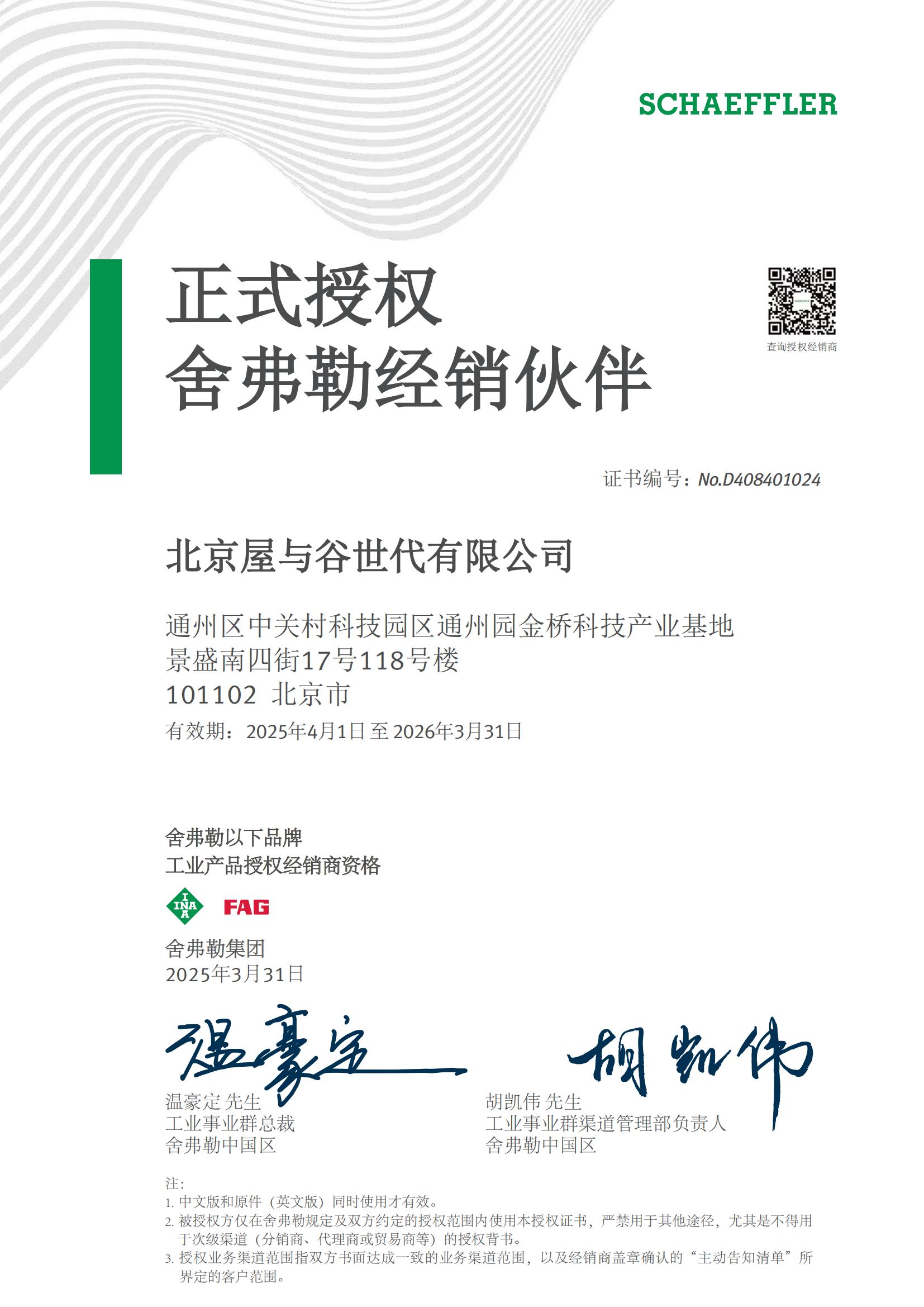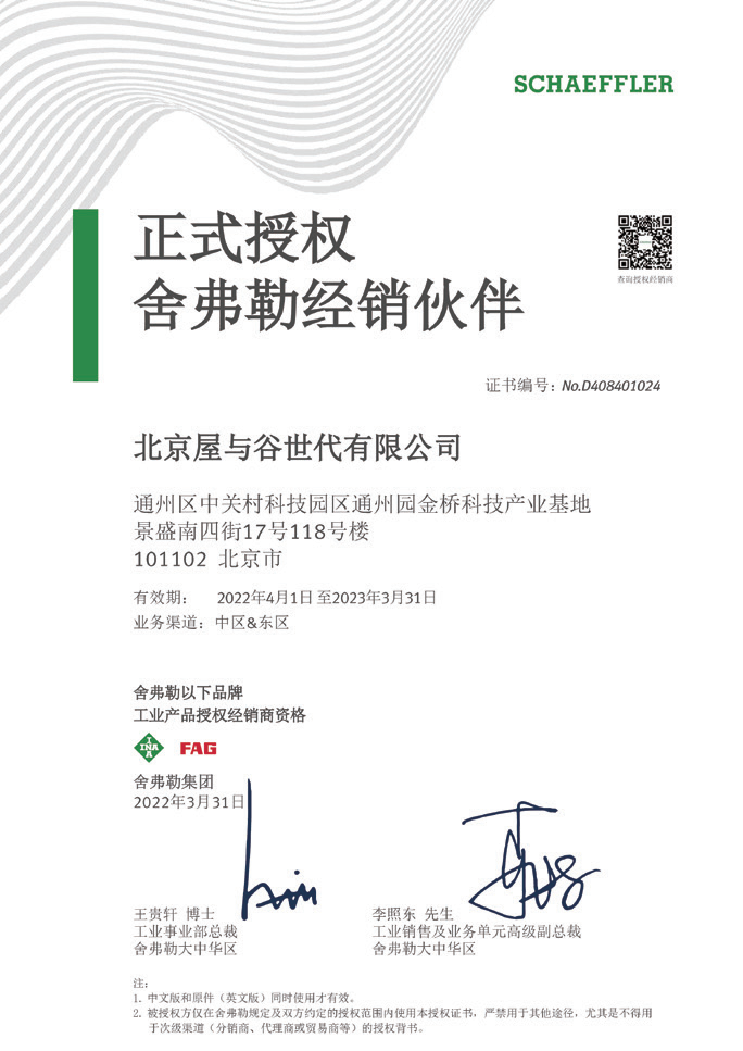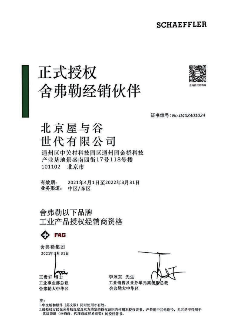 北京屋与谷世代有限公司在多年的经营中通过不断探索和努力并积极思考以适应日新月异,变幻莫测的市场环境,为广大客户提供一流的舍弗勒产品以及相关技术服务,做舍弗勒产品在大中华区的卓越运营商是我们一直以来努力的方向和追求目标。